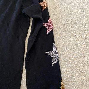 INC Black sweater with sequin stars on the sleeves. Barely warn. Can upload more pics if needed.