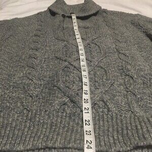 INC gray wool blend fisherman knit sweater XXL cable knit shawl button collar
