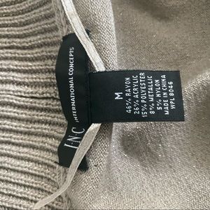 Hip length coatigan with thick, ribbed shawl collar and ribbing at long sleeves. Subtle metallic thread throughout. Very thick and good quality.