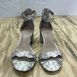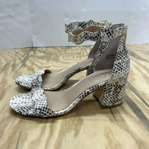 INC women's Size 7M snake skin print back zip block heel Ankle Strap sandals.
