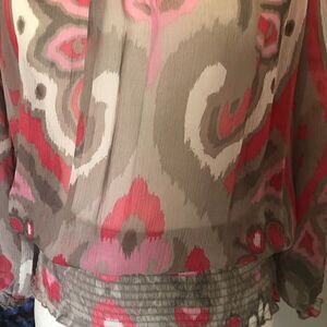 INC. Brand 10% silk, sheer dressy blouse. Wear with cami underneath. Cinched waistband.