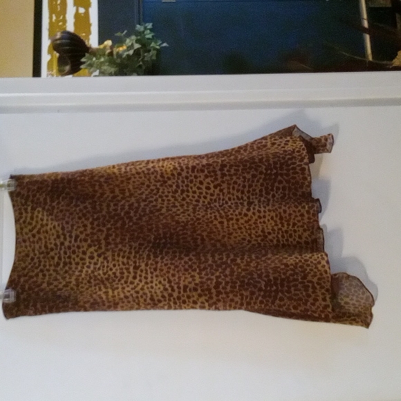 INC,8, Leopard print black/golden brown, 100% silk, side zipper, flared hem,fully lined
