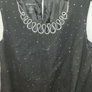Brand new with tags, INC International Concepts Macy's tweed sleeveless sheath dress. Nice heavy weight (59% wool, 32% acrylic, 6% polyester, 3% other - lining 100% polyester ) with rhinestone detailing at the collar and small sequins sewn on throughout. Elegant fitted style