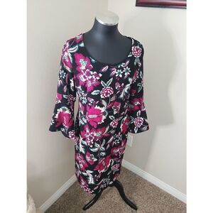 Gorgeous INC floral Midi with scoop neck and bell sleeves. Body con style. See photos for measurements