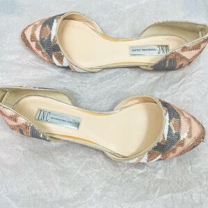 I.N.C Dusty Metallic International Concepts sequin glittery flats size 6M Rose and Yellow Gold.