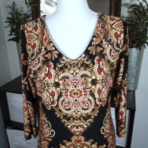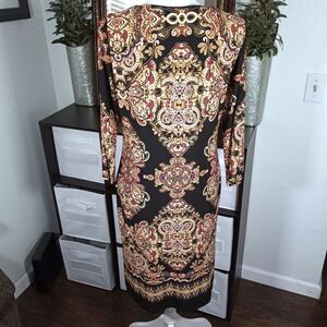 I.N.C INTERNATIONAL CONCEPTS BLACK, GOLD & BURGUNDY DRESS SZ.S EUC