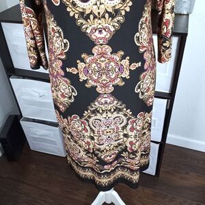 I.N.C INTERNATIONAL CONCEPTS BLACK, GOLD & BURGUNDY DRESS SZ.S EUC. GORGEOUS DRESS IN EXCELLENT USED CONDITION.