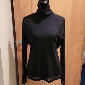 INC International Concepts Black Sheer Sleeve Turtleneck. Sz L