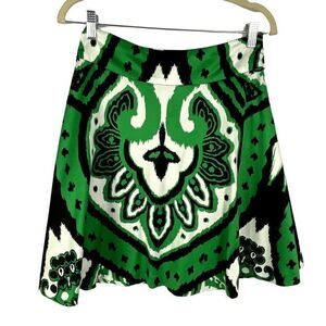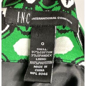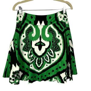 INC International Concepts Folkloric Ikat Green Print Skirt, size 0, Lined