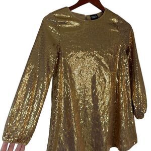 Item: INC International Concepts Gold Sequin Longsleeve Dress Girls Medium Glam
