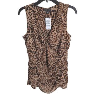 INC International Concepts Leopard Animal Print Knot Front Sleeveless Mesh Top M
