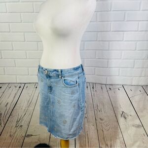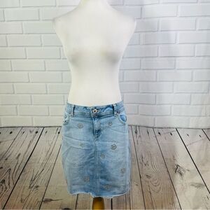 INC International Concepts Light Wash Rhinestone Embellished Pencil Skirt - Size 10. Excellent condition no flaws or missing rhinestones. Measurements are shown in the 12th - 14th photos.