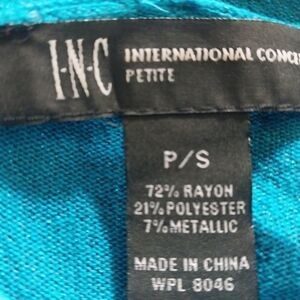INC International Concepts Turquoise PETITE Cardigan with Sparkle & Lapels.