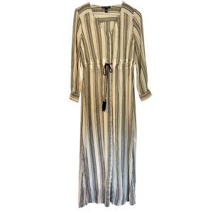 INC International Concepts white striped long sleeve metallic thread maxi dress