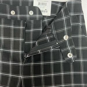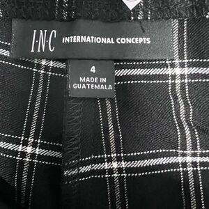 INC International Concepts Pants Black White Plaid Mid Rise Straight Leg Size 4