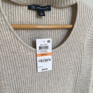 INC International Concepts Cream Ribbed Cut Out Sweater NWT