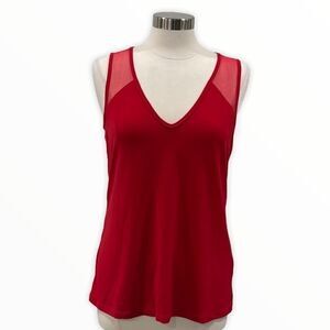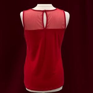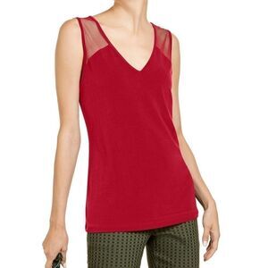 INC International Concepts Women’s Sleeveless Illusion-Inset Top in Real Red Color