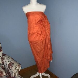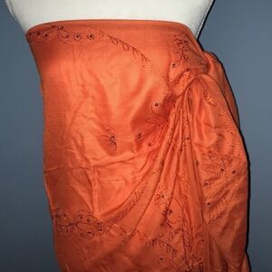 Beautiful Bright Orange Pareo with embroidery and sequins.