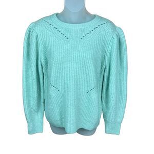 INC International Concepts Paleo Pales Pullover Sweater Mint Green Powder Puff Balloon Sleeves Eyelet Pointelle Knit Size Medium