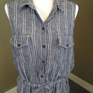 Breezy and all-in-one chic this INC International Concepts Romper is made for stylish adventures with vertical stripes and cinch tie waist.