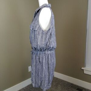 Striped tie waist linen-blend Romper