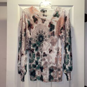 INC International Concepts Tie Dye Sweater, size medium. Excellent condition! Puffed sleeves. Lightweight sheer material. It has a little sparkle to it. So pretty!