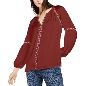 INC International Concepts Women’s Grommet-Trim Peasant Blouse in the Size Medium in Burnt Pepper Color