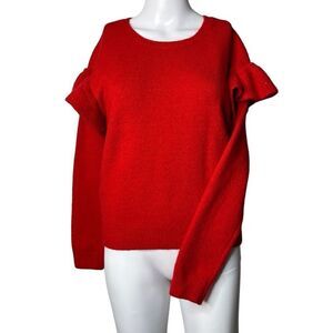 INC Knit Long sleeve Ruffle Sweater Red Size Small