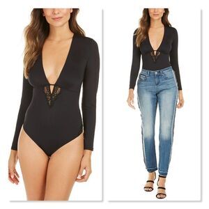 INC Lace Keyhole Bodysuit in Black - NEW