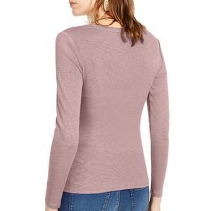 INC Long-Sleeve Draped Ribbed T-Shirt size XS in Pale Mauve.