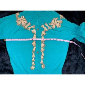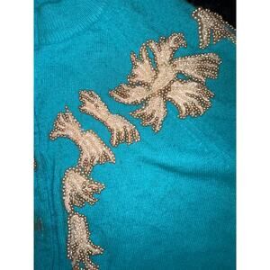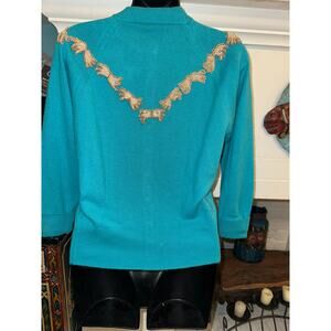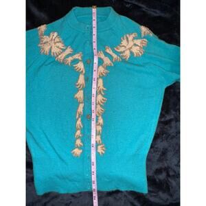 INCREDIBLE VINTAGE UNIQUE TURQUOISE BEADED CARDIGAN SWEATER S/M