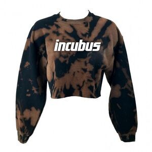INCUBUS Acid Wash, Distressed "Cropped" Crop Top Long Sleeve Crewneck Sweatshirt. Size: Small, Medium, Large and XL