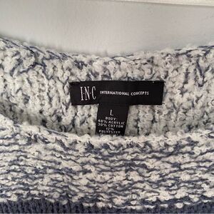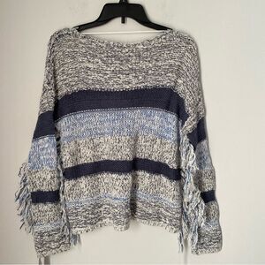 INC Women’s Crew Neck Fringe Details Knit Striped Sweater size L