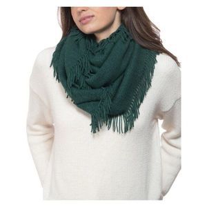 INC Womens Raschel Loop Infinity Fringe Scarf Dark Hunter Green Soft Cozy One Size New.