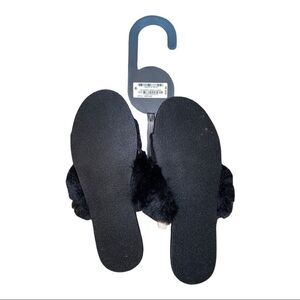 A mix of textures and plush faux fur create these stylish scruff slippers from I.N.C. International Concepts.