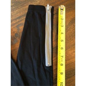 Black INC nylon spandex side zip leggings in size M. Never worn. Refer to photos for measurements. Cute contrasting fabric ankle zippers add style to these stretch leggings.