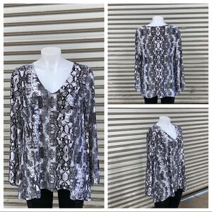 INC size Large top black and white snake skin print. This top is absolutely beautiful in excellent condition. A9