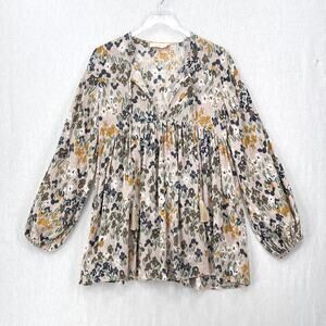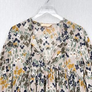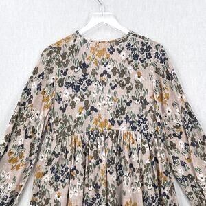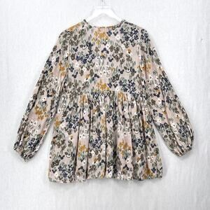 INDAH Floral Print Babydoll Mini Dress Womens Small Medium Long Sleeve Cotton