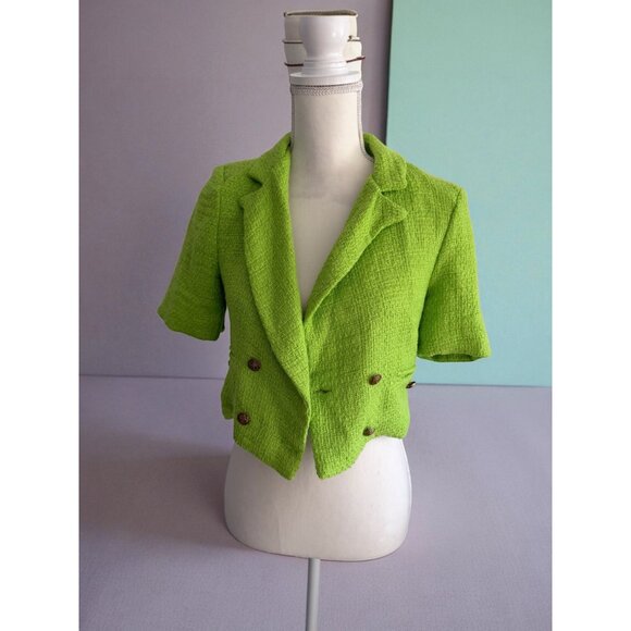 INDEFEIR Lime Green Boucle Crop Blazer Jacket Size XS