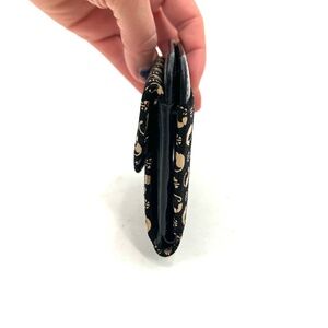 INDENYA Black Beige Cat Pattern Sarasa Japanese Small Leather Compact Wallet