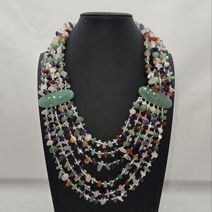 INDIAN MULTI STRAND STONE STATEMENT NECKLACE WITH