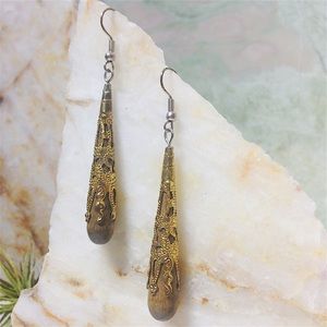 Indian wooden teardrop with golden foil earrings. Bohemian chic and stylish. 2.5" in length.