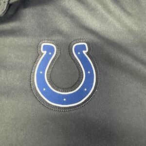 The product is a men's medium Nike Dri-Fit polo shirt in gray with a logo featuring the Indianapolis Colts. The shirt is designed with short sleeves and is perfect for casual wear or football enthusiasts looking to show their team pride. The Nike Swoosh adds a stylish touch to the classic polo shirt, making it a versatile addition to any man's wardrobe.