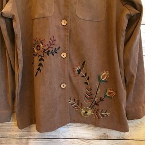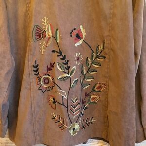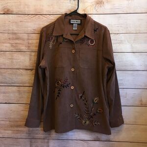 EXCELLENT CONDITION INDIGO MOON FAUX SUEDE EMBROIDERED TOP IN TAN