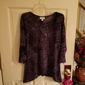 Love this top but it's a little snug...never worn. Size M. Looks especially great w/ white Jean's! My gf has it. Figure flattering, on-trend, dress it up or down! NWOT.