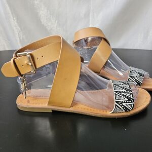 INDIGO RD Aztec Batik Sandals Sz 7.5 Black & White Flats Ankle Strap Boho