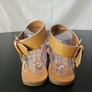 These flat sandals are perfect for casual occasions and feature an ankle strap with buckle closure for a secure fit.
