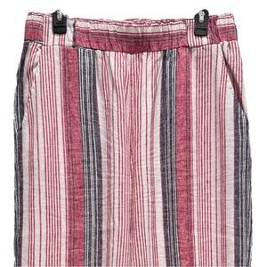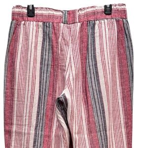 INDIGO REIN Size XL White/Blue/Burgundy Striped Wide Leg Linen Blend Pants
