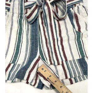 INDIGO REIN Womens MEDIUM Teal/Maroon Stripe Linen Blend 2.5" Paperbag SHORTS