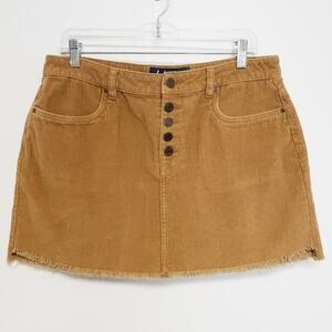 INDIGO Rein Golden Brown Corduroy mini skirt size 13/30 button fly raw hem